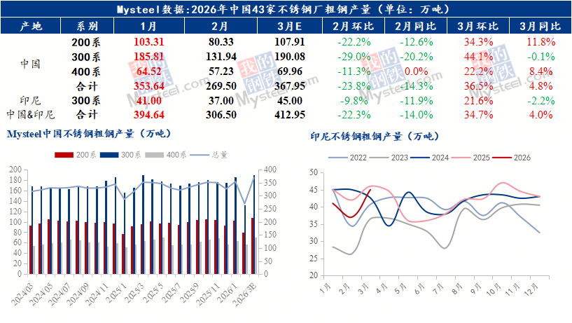 2026年2月不锈钢板粗钢产量及3月排产调查统计